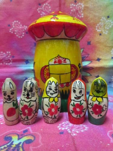 ロシアの民話「テレモック」のマスコットセットです★子供のおもちゃや、お部屋のインテリアにどうぞ♪家サイズ:約12cm、動物サイズ:約4cm